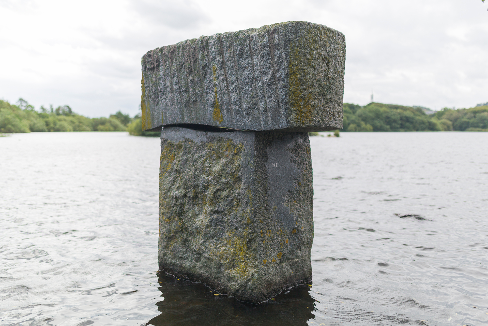 «Bølge I», også kalt «Bølgen», består av to store steinblokker som er plassert oppå hverandre, og som ruver opp av vannet på utsiden av Andedammen. Steinblokkene er laget av bergarten larvikitt. Kikker du gjennom glipen mellom steinene, vil du oppdage opphavet til navnet–luftrommet er nemlig formet som en bølge. Skulpturen er bekostet av Olaf A. Olsens legat til forskjønnelse og vedlikehold av Mosvannsparken.